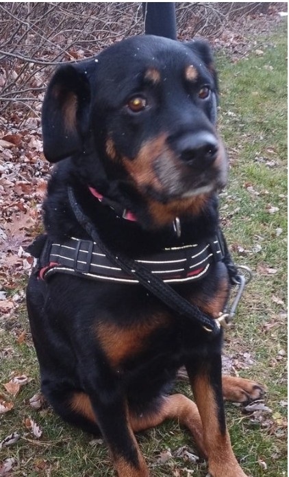 Bella est un Bouvier Bernois croisé Rotweller utilisé contre l’anxiété. Elle a 13 ans. Très calme et patiente.