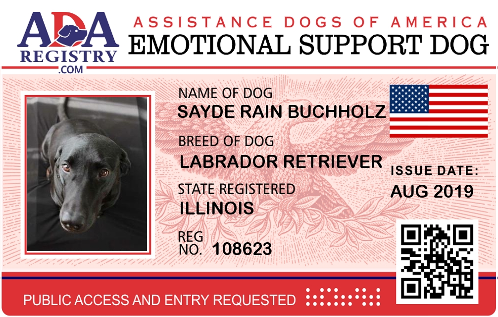 Emotional Support Dog Registration for Sayde Rain Buchholz