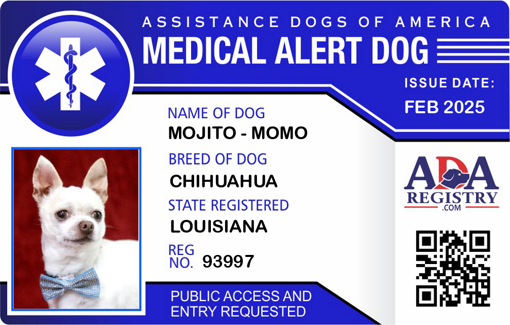 Medical Alert Dog Registration for Mojito - momo