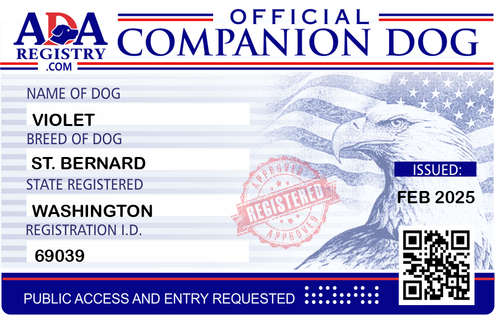 Emotional Support Dog Registration for Nigel Greywin Dreher